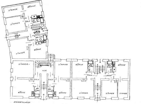 Die Wohnungen teilen sich auf 3 Hauseingänge auf.