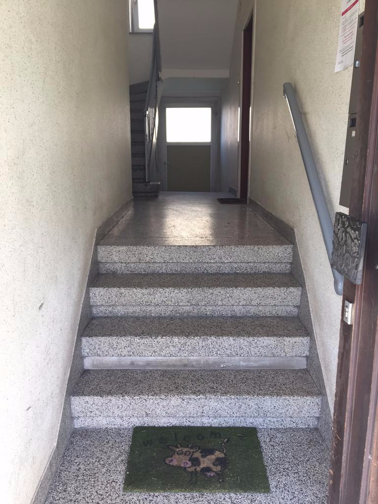 Die Stufen im Treppenhaus sind aus Stein.