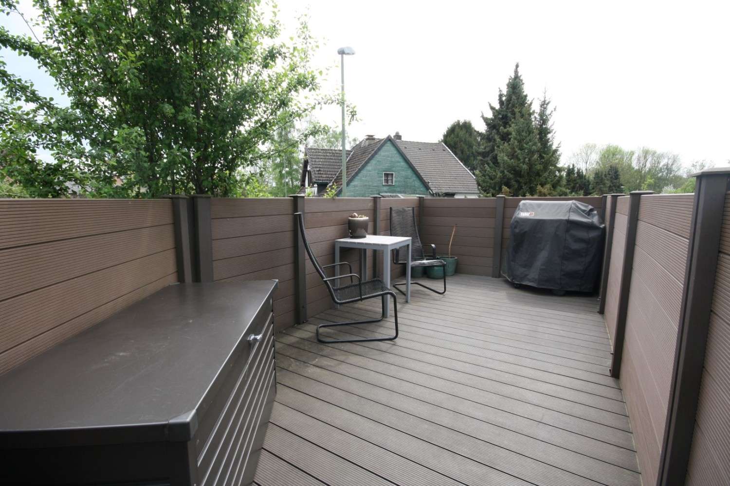 Es gibt einen Verwalter, der sich um die Belange der (insgesamt 6) Häuser, die als Eigentümergemeinschaft errichtet wurden, kümmert. Das Hausgeld liegt bei aktuell nur 220 Euro inklusive Heizung, Zuführung zur Instandhaltungsrücklage und Verwaltung. Inklusive Grundsteuer und Müllgebühr liegen die monatlichen Kosten bei aktuell nur 296 Euro.