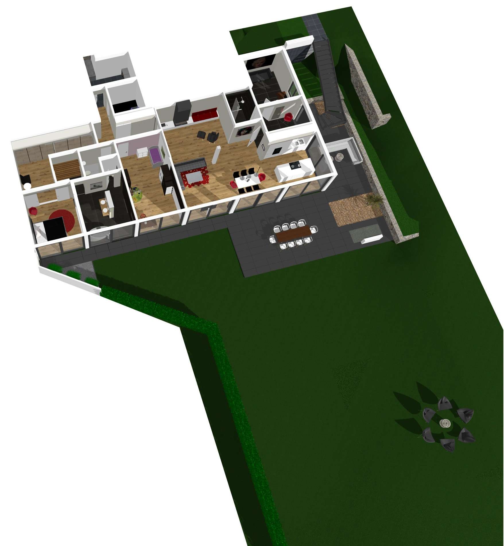 + Bodentiefe Glasfront über die gesamte Wohnung zum Garten